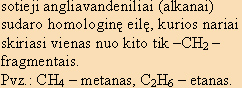 Homologinė eilė - sotieji angliavandeniliniai (alkanai) sudaro homologinę eilę, kurios nariai skiriasi vienas nuo kito tik fragmentais (žr. pav.).