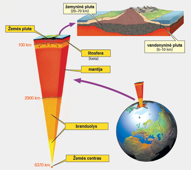 Viršutinis mūsų planetos apvalkalas vadinamas Žemės pluta. Skiriama žemyninė ir vandenyninė pluta.