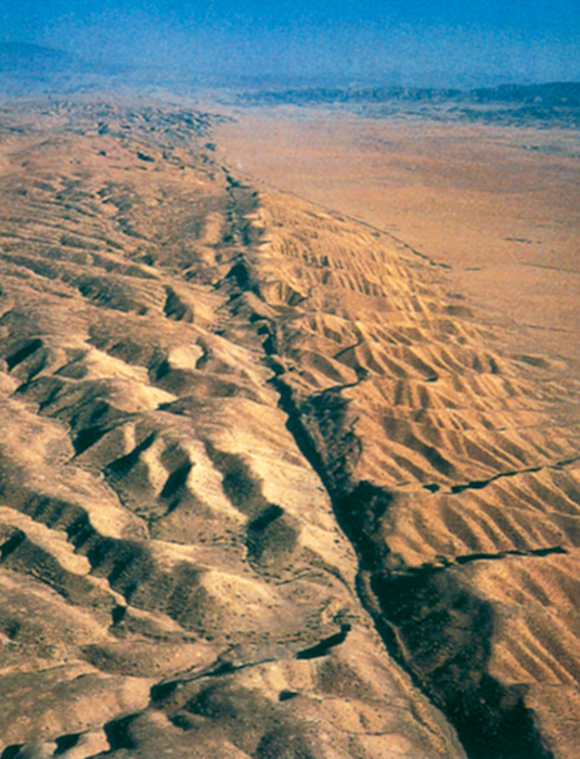 Per Kaliforniją driekiasi 1000 km ilgio Šv. Andriejaus tektoninis lūžis. Jis skiria Šiaurės Amerikos ir Ramiojo vandenyno litosferos plokštes. Plokštės ne tik juda, bet ir spaudžia viena kitą. Kai dėl milžiniško spaudimo Žemės pluta iškyla ir pasistūmėja, įvyksta žemės drebėjimas.