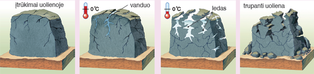 Mechaninis dūlėjimas yra uolienų smulkinimas. Daugiausia jį sukelia temperatūros pokyčiai. Dieną uolienos paviršius įkaista ir išsiplečia. Naktį oras atvėsta – smulkūs plyšeliai susitraukia. Pamažu uolienoje atsiranda stambesnių plyšių. Jie dėl periodiško šilimo ir vėsimo didėja, plečiasi. Patekęs į plyšelius vanduo šaldamas plečiasi ir dar labiau spaudžia jų sieneles. Galiausiai uoliena netenka tvirtumo ir sutrupa į įvairaus dydžio nuolaužas. Šios vėliau – virsta skalda ir smėliu.