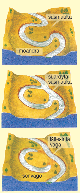 Siauriausioje jos vietoje vanduo kartais suardo sąsmauką ir prasigraužia naują, tiesesnę vagą.