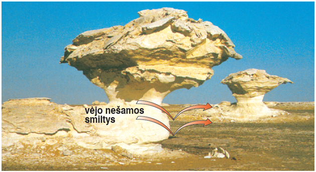 Gamtoje pastebimą darbą atlieka vėjas. Vienur jis ardo paviršių, o kitur kuria. Vėjo veikla labiausiai matyti ten, kur purus žemės paviršius neturi augalinės dangos. Vėjas mažiausias smilteles gali nuskraidinti tūkstančius kilometrų.