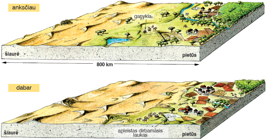 Sahara plečiasi. Mokslininkai jau pastebi, kad daugelio pasaulio dykumų plotas kasmet didėja. Sahara per pastaruosius 60 metų išsiplėtė net 690 tūkst. km². Šis plotas dešimt kartų didesnis už Lietuvą! Toks dykumų plėtimas vadinamas dykumėjimu. Jis dažniausiai vyksta dėl ypač didelio gyventojų skaičiaus ir augalijos dengos nykimo. Kopos pasislenka nuo kelių dešimčių iki kelių šimtų metrų per metus. Slenkančios kopos pavojingos dykumų gyventojams. Jos užpusto ištisus kaimus, laukus, kelius, šulinius. Judančias kopas galima sustabdyti apsodinat krūmais ir medžiais.