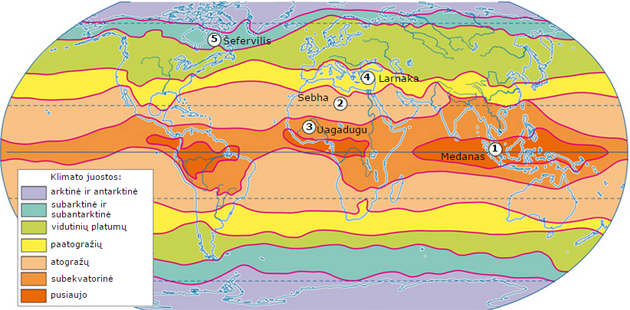 Dėl įvairių veiksnių klimatas mūsų planetoje labai įvairus. Mokslininkai skirsto pasaulį į klimato juostas. Kiekviena tokia juosta viena nuo kitos skiriasi temperatūra, vyraujančiomis oro masėmis, kritulių kiekiu ir turi trumpą bei paprastą pavadinimą.