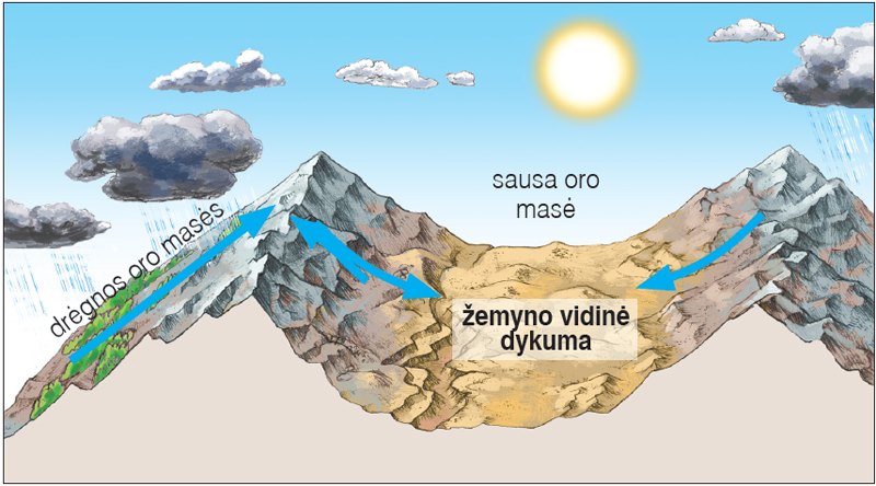 Nemažą plotą dykumos apima paatogrąžių (subtropinėje) ir vidutinių platumų klimato juostose. Šios dykumos plyti žemynų gilumoje arba tarp aukštų kalnų grandinių. Kritulių čia iškrinta mažai, nes iki jūrų ir vandenynų didelis atstumas. Be to, aukšti kalnai užveria kelią drėgnoms oro masėms.