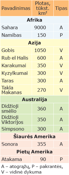 Didžiausią plotą tokios dykumos apima Azijos žemyno gilumoje. Antai Gobio dykuma driekiasi 1500 km per Mongoliją ir Kiniją. Plotu ši dykuma nusileidžia tik Saharai. Vasarą Gobis panašus į atogrąžų dykumas – vyrauja didžiulis karštis. Tačiau žiemą iškrinta sniegas ir spingina šaltis. Panašus klimatas kitose vidinėse dykumose: Karakumuose, Kyzyklumuose.