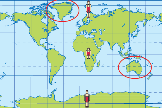 Tuo galima įsitikinti sugretinus Grenlandijos ir Australijos dydį pasaulio žemėlapyje. Susidaro įspūdis, kad jų dydis beveik toks pat. Tačiau Australija maždaug tris kartus didesnė už Grenlandiją! Tai akivaizdžiai matyti gaublyje. Jame objektai vaizduojami tiksliai.